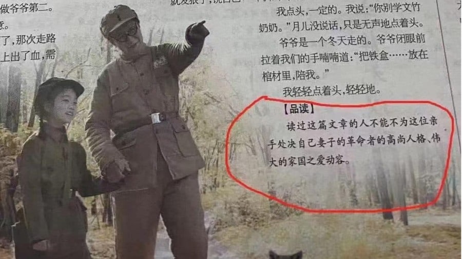 Điều khó tin hơn nữa là một bài trong sách thiếu nhi “Khăn trùm đầu màu đỏ” được đăng trên tờ “Tin tức khóa học mới”, kể về một nhà cách mạng đã quyên góp một mẻ vàng làm “kinh phí cách mạng”, nhưng vợ ông không đồng ý, sau đó nhà cách mạng đã tự tay bắn chết vợ mình.