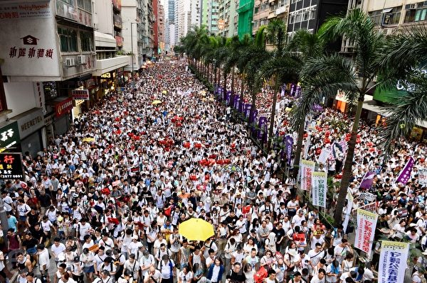 Hình ảnh người dân diễu hành phản đối dự luật dẫn độ đào phạm sang Trung Quốc của chính phủ Hồng Kông (Ảnh: Epoch Times)
