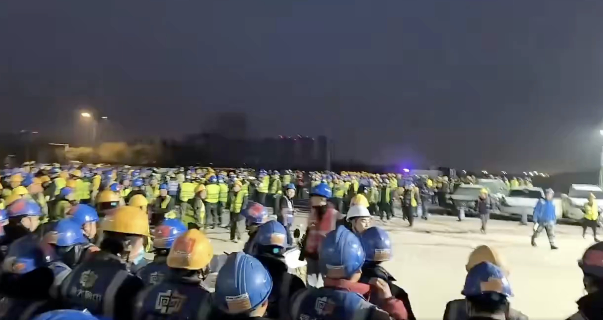 Một đoạn video khác cho thấy ngày 12/2, tại Uy Hải (Sơn Đông), xưởng đóng tàu Vu Hồ không chỉ nợ lương ba tháng liền mà còn gọi cảnh sát đến trấn áp, cưỡng chế giải tán công nhân đòi lương và bắt đi nhiều người.