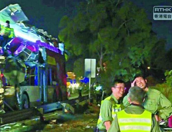 Cảnh sát Hồng Kông tươi cười tại hiện trường tai nạn giao thông thảm khốc