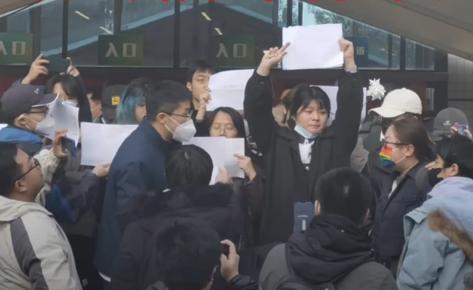 3 năm cực lực ngăn chặn dịch bệnh của ĐCSTQ đã mang đến sự hỗn loạn, khiến người dân oán thán. Vụ hỏa hoạn ở Urumqi, Tân Cương đã châm ngòi cho các cuộc biểu tình của người dân và sinh viên ở nhiều nơi tại Đại Lục, đồng thời khơi mào cho “Phong trào Giấy trắng”. Họ hét lên “Đảng Cộng sản, hãy hạ đài.”