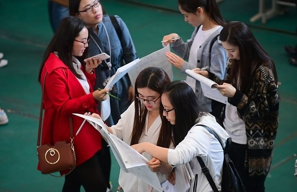 Những người trẻ tuổi tìm kiếm cơ hội việc làm tại Hội chợ Việc làm tại Đại học Hàng không Vũ trụ Thẩm Dương ngày 13/5/2017 (Ảnh: Getty Images)