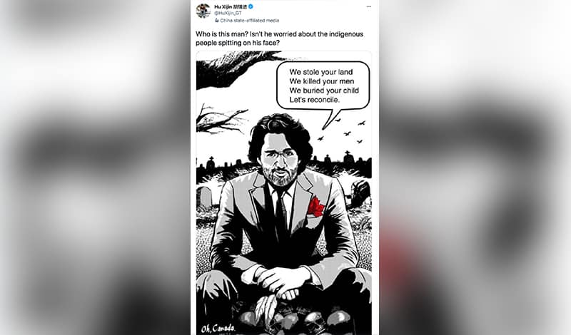 Không hài lòng với những chỉ trích của Canada về việc chính quyền Bắc Kinh đàn áp các dân tộc thiểu số ở Tân Cương, các quan chức Đảng cộng sản Trung Quốc (ĐCSTQ) đã liên tục tấn công sự kiện về các di thể trong các trường nội trú của thổ dân Canada.