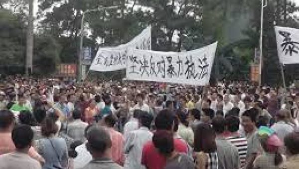 Để kháng nghị việc xây nhà hỏa táng, từ ngày 28/11, hàng nghìn người dân trong thôn vốn muốn đến trụ sở chính quyền địa phương biểu tình hòa bình, nhưng đã bị nhiều cảnh sát chống bạo động chặn đường, dẫn đến xung đột kịch liệt giữa người dân và cảnh sát.