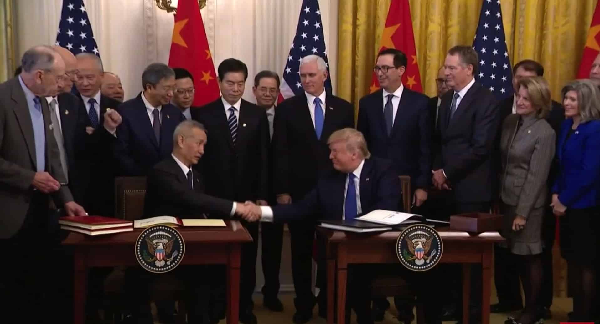 Tổng thống Mỹ Donald Trump và Phó Thủ tướng Quốc vụ viện Trung Quốc Lưu Hạc đã ký kết thỏa thuận thương mại giai đoạn một tại Nhà Trắng vào ngày 15/1. Tuy nhiên, ngoại giới cũng đặt câu hỏi, phía Mỹ là do đích thân Tổng thống Trump ký vào thỏa thuận, như vậy theo sự đồng đẳng về địa vị thì vì sao phía Trung Quốc lại không phải là do ông Tập Cận Bình ký?