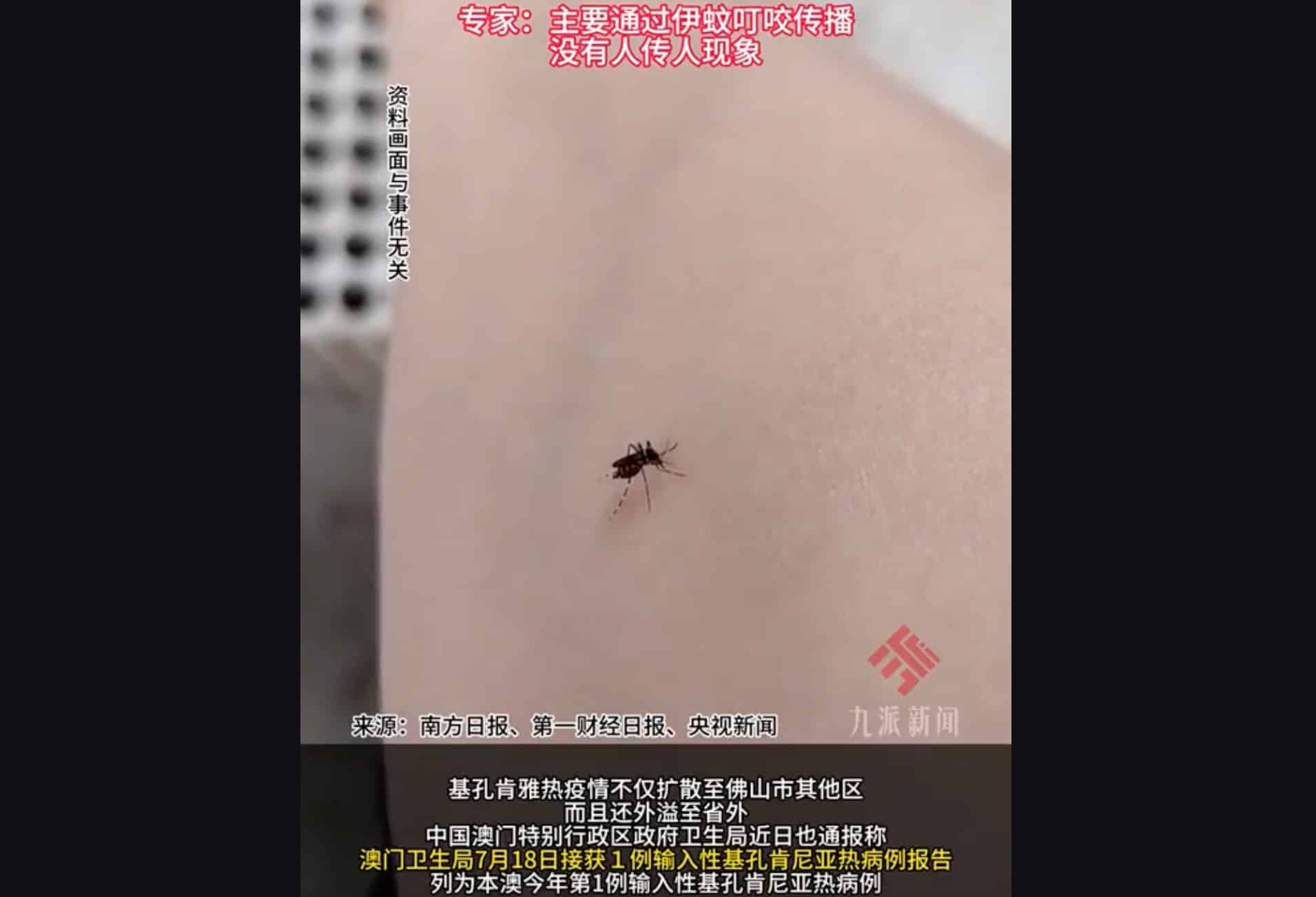 Gần đây, thành phố Phật Sơn, tỉnh Quảng Đông, Trung Quốc đã bùng phát dịch sốt Chikungunya, trong chưa đầy mười ngày đã báo cáo hơn 4.000 ca, con số thực tế có thể còn cao hơn. Một số bệnh nhân cho biết khi bị nặng thì hoàn toàn không thể đi lại. Hiện tại, dịch bệnh đã lan rộng đến Macau và Bắc Kinh. Các chuyên gia cảnh báo loại muỗi mang virus này đang di chuyển về phía bắc Trung Quốc và có nguy cơ lan ra rộng. Tổ chức Y tế Thế giới (WHO) cảnh báo rằng loại virus này có thể gây ra một đại dịch toàn cầu.