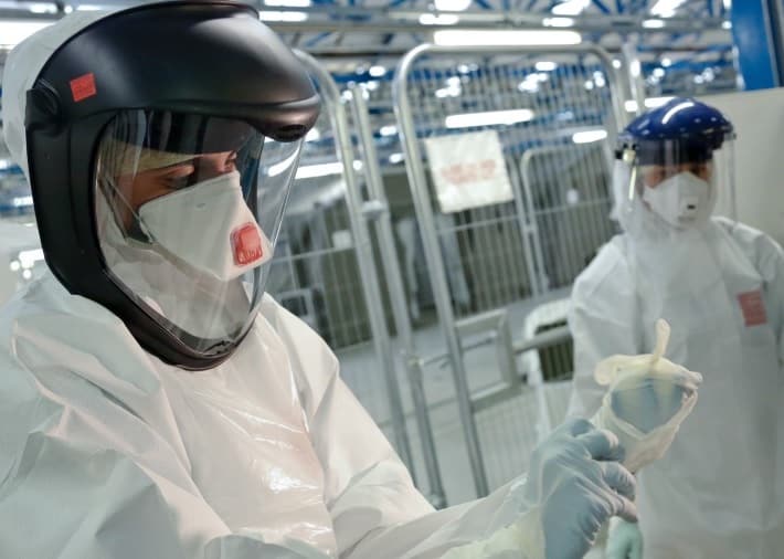 Hình ảnh nhân viên y tế bước ra khỏi bệnh viện Kim Ngân Đàm tại Vũ Hán (Ảnh: Getty Images)