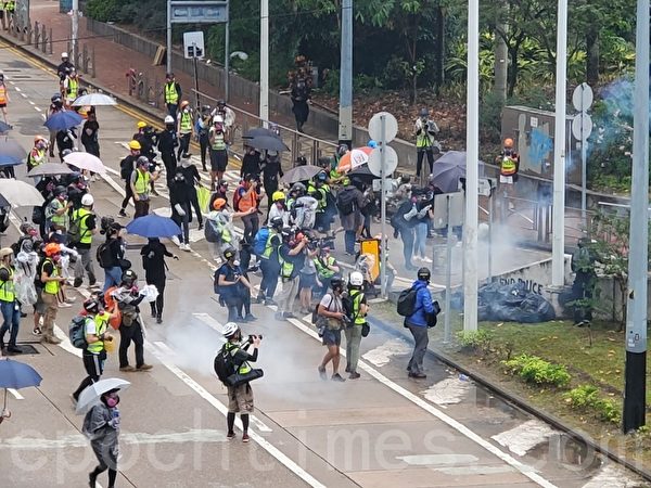 Cảnh sát chống bạo động cũng tấn công những người biểu tình dọc theo đường Hennessy ở Wan Chai. Hàng chục người đã bị bắt giữ, trói tay và đưa đi. Người dân vẫn không ngừng hô khẩu hiệu “Giải tán lực lượng cảnh sát, không thể trì hoãn”.