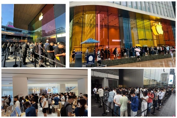 Người ta nói rằng có hàng dài người xếp hàng tại các cửa hàng Apple ở Bắc Kinh, Thượng Hải và Thâm Quyến. Một số người đã đứng bên ngoài cửa hàng từ 5h sáng.
