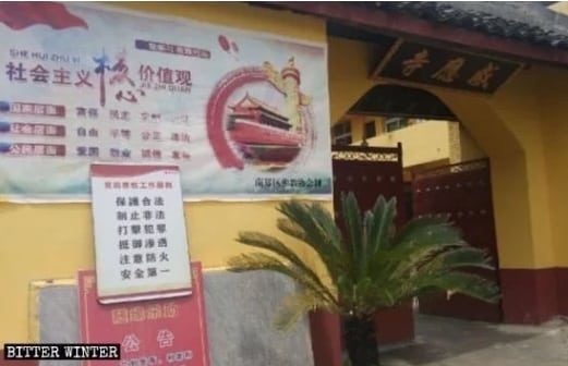 Cờ năm sao của ĐCSTQ, các bài hát ca ngợi đảng và Mao Trạch Đông lần lượt tiến nhập vào trong đền chùa. Kinh sách Phật pháp cũng bị thay thế bằng các sách về tưởng chính sách của ĐCSTQ.
