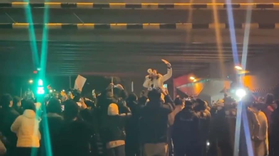 Sau khi phong tỏa Tân Cương quá mức dẫn đến thảm kịch hỏa hoạn khiến 10 người thiệt mạng và 9 người bị thương (theo số liệu công bố của chính quyền), các cuộc biểu tình công khai quy mô lớn đã diễn ra ở Thượng Hải, Bắc Kinh, hơn 50 trường cao đẳng đại học, trong 2 ngày liên tiếp. Làn sóng phản đối này còn lan sang cả Vũ Hán.
