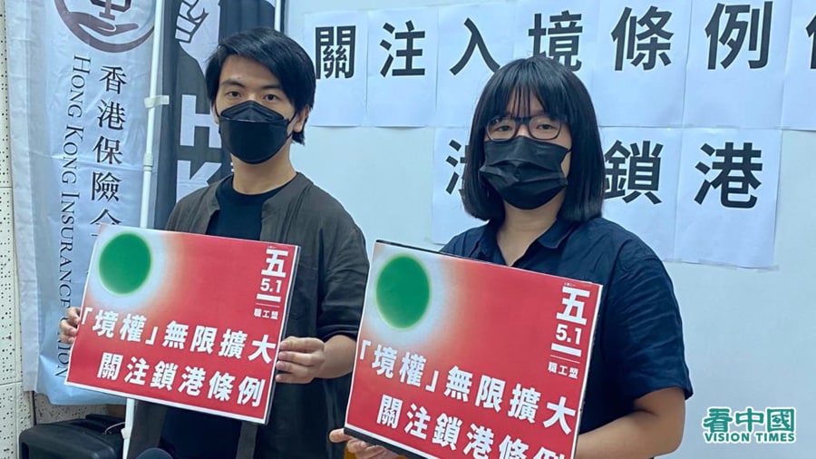 Đặng Kiến Hoa (bên trái) tổ chức một cuộc họp báo với Trâu Hạnh Đồng, phó chủ tịch “Liên minh Công dân Hồng Kông ủng hộ các Phong trào Dân chủ Yêu nước” vào tháng 4 năm ngoái, chú ý đến việc chính quyền Hồng Kông sửa đổi luật nhập cư. (Ảnh: Lý Tình / Vision Times)