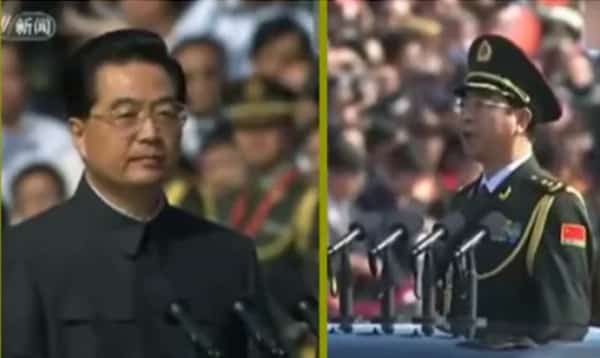 Trong đó cảnh quay trong lễ duyệt binh cho thấy khi đối mặt với Phòng Phong Huy, vẻ mặt của Hồ Cẩm Đào biểu hiện lạ thường.