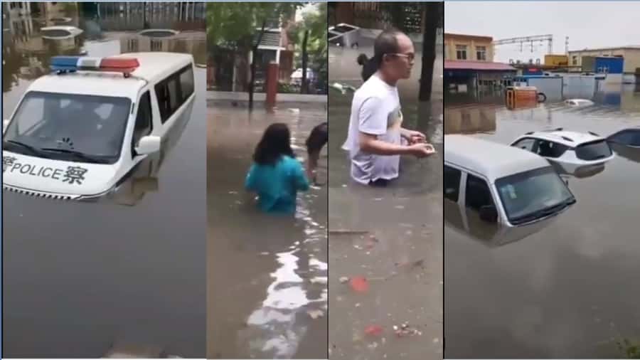 Theo các video lan truyền trên Internet, nhiều thành phố ở Trung Quốc Đại Lục đã bị ngập lụt do mưa lớn và thời tiết khắc nghiệt: