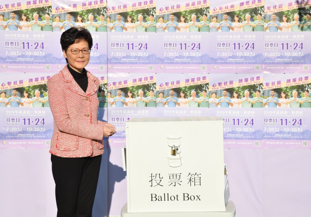 Trưởng Đặc khu Hồng Kông Carrie Lam (Lâm Trịnh Nguyệt Nga) nói rằng bà tôn trọng kết quả bầu cử và chính phủ sẽ lắng nghe công chúng với tư duy cởi mở.