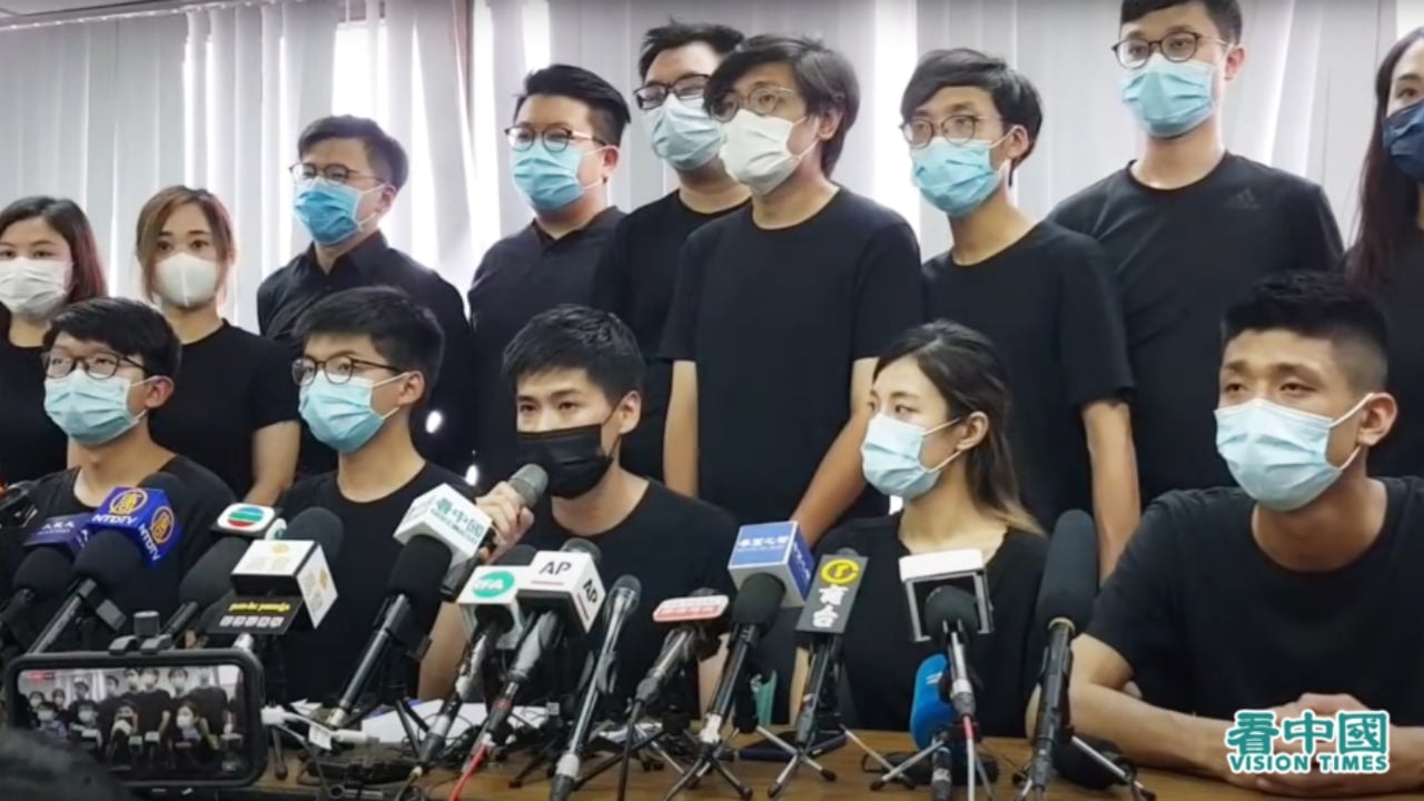 Tháng 7/2020, phe biểu tình giành chiến thắng trong cuộc bầu cử sơ bộ dân chủ đã tổ chức họp báo, bày tỏ sự phản đối luật an ninh quốc gia. (Ảnh: Lương Lộ Tư /Vision Times)