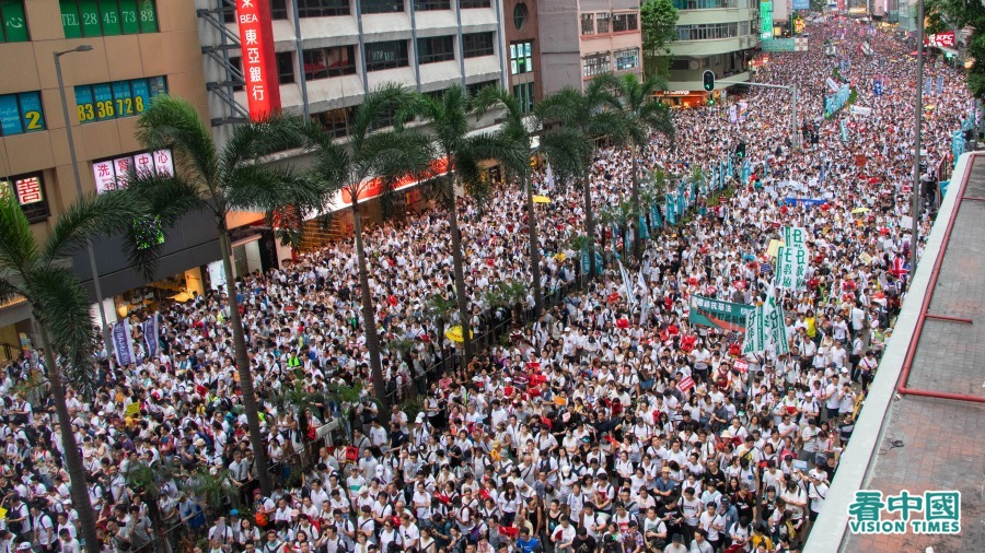 Ngày 6/9/2019, dưới thời tiết nóng bức, người Hồng Kông không phân biệt nghề nghiệp chức vụ, tuổi tác, cùng nhau xuống đường phản đối luật tà ác, số người đông chật kín các con đường chính ở khu vực Đảo Hồng Kông. Phần lớn họ mặc áo trắng, từ sáng đến tối, cùng hô lớn các khẩu hiệu “Phản đối đưa người (dẫn độ) đến Trung Quốc , rút lại luật tà ác”, “Lâm Trịnh (Nguyệt Nga) hạ đài”, v.v. Dọc đường liên tiếp có người dân tham gia vào đội ngũ tuần hành, những người tuần hành cổ vũ hoan nghênh mọi người cùng tham gia.
