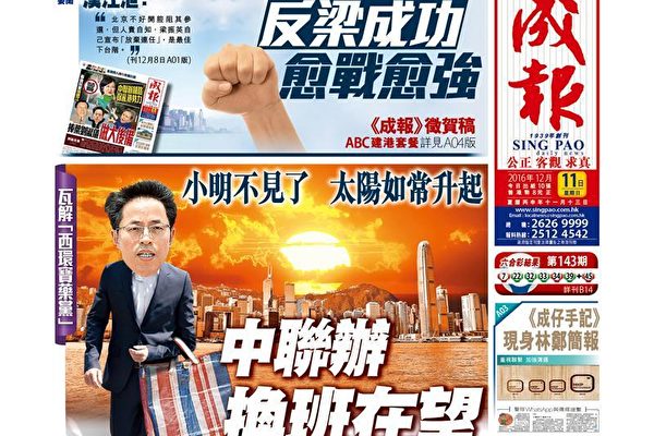 Trước đó (ngày 1/10), tờ Apple của Hồng Kông có nhận định, hình ảnh quảng cáo “ông tìm cháu” trên trang nhất tờ Sing Pao Daily News là ám chỉ ông Trương Hiểu Minh, việc ông Trương Hiểu Minh phải về Bắc Kinh bàn giao nhiệm vụ là khó tránh khỏi.