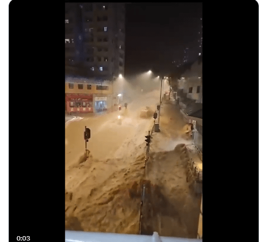In Chai Wan, Hong Kong, under the heavy rain of 150 mm in one hour, the streets have turned into raging rivers! pic.twitter.com/nZrG1t8cQG