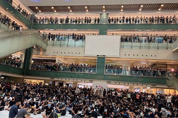Chính phủ Hồng Kông công bố thi hành Luật Cấm che mặt đã khiến người dân Hồng Kông phản đối dữ dội, các hoạt động kháng nghị liên tiếp diễn ra. Ngày 13/10, người Hồng Kông tổ chức hoạt động kháng nghị “Hòa dũng một nhà, Hoa nở khắp nơi” ở 18 khu thương mại, và đại hội hạc giấy “Tôi nhớ Hồng Kông”.Hình ảnh người kháng nghị bên trong khu thương mại New Town Plaza tại Sa Điền chiều ngày 13/10. (Ảnh: Epoch Times)