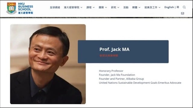 Theo thông báo trên trang web của Đại học Hồng Kông, ông Jack Ma đã được mời làm giáo sư danh dự của Trường Kinh doanh và Trường Kinh tế thuộc Đại học Hồng Kông vào ngày 1/4 năm nay với nhiệm kỳ 3 năm, và kết thúc vào tháng 3/2026.