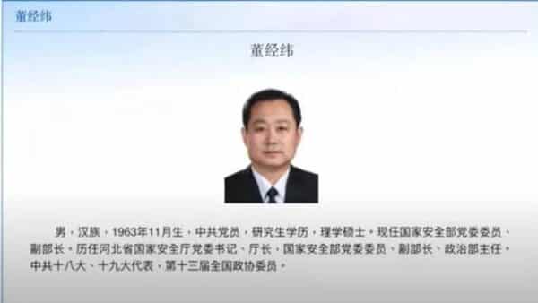 Một là, thông tin về ông Đổng Kinh Vĩ, đương kim Thứ trưởng Bộ An ninh Quốc gia Trung Quốc bị phong tỏa, đây là một sự việc hết sức kỳ lạ. Hiện tại ông Đổng Kinh Vĩ biến mất khỏi mục nhập Bách khoa toàn thư Baidu. Còn trên trang web chính thức của Bộ An ninh Quốc gia ĐCSTQ, chỉ có Bộ trưởng Bộ An ninh Quốc gia là có ảnh, những thứ trưởng khác đều không được hiển thị. Trên trang web chính thức của Hiệp hội Luật sư Trung Quốc, phần giới thiệu ông Đổng Kinh Vĩ là Phó chủ tịch Hội đồng thứ 8 của Hiệp hội Luật gia Trung Quốc đã xóa ảnh. Tất cả các chủ tịch và phó chủ tịch khác đều còn ảnh.