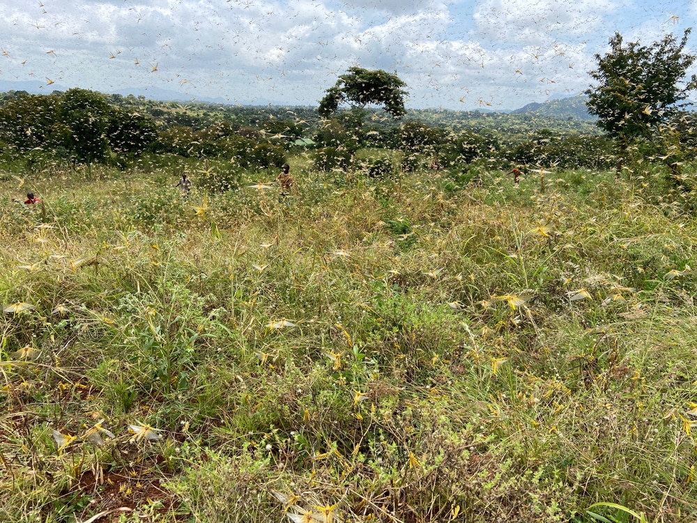Khi đội quân châu chấu tiến vào vựa lúa của người Ethiopia, chính quyền địa phương đã thuê máy bay của công ty tư nhân để phun thuốc lên không trung. Phi công nói rằng những con châu chấu dựa vào khí lưu bay cao đến 3.000 feet (914m), đủ để chặn các cửa nạp khí của máy bay. Khi phi công hoàn thành nhiệm vụ phun thuốc, toàn bộ thân máy bay được bao phủ bởi chất nhầy côn trùng, đến mức thậm chí không thể nhìn thấy kính chắn gió.