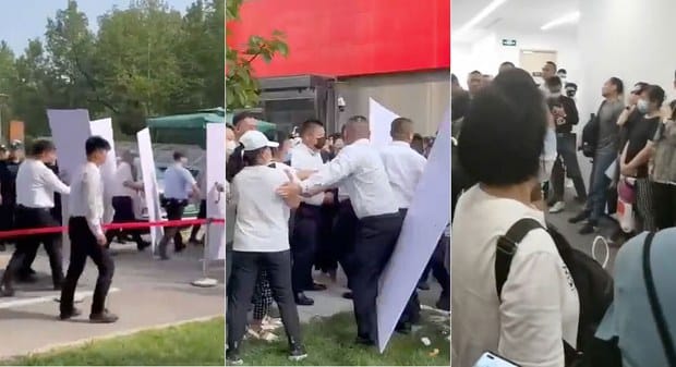 Video chia sẻ trên mạng cho thấy vào ngày 4/9, một lượng lớn người Trung Quốc Đại Lục đã đến bên ngoài trụ sở của Tập đoàn Zhongzhi (Zhongzhi Enterprise Group) ở quận Triều Dương, thủ đô Bắc Kinh, để bảo vệ quyền lợi của mình. Khi người dân đến hiện trường thì bị những người đàn ông mặc áo trắng không rõ danh tính đánh đập. Trong thời gian đó, những người mặc áo trắng đã dùng một tấm vách ngăn màu trắng cao khoảng 2 mét để ngăn cản người xung quanh chụp ảnh. Cảnh sát đứng bên lề cũng không ngăn hành vi bạo lực của những người này.