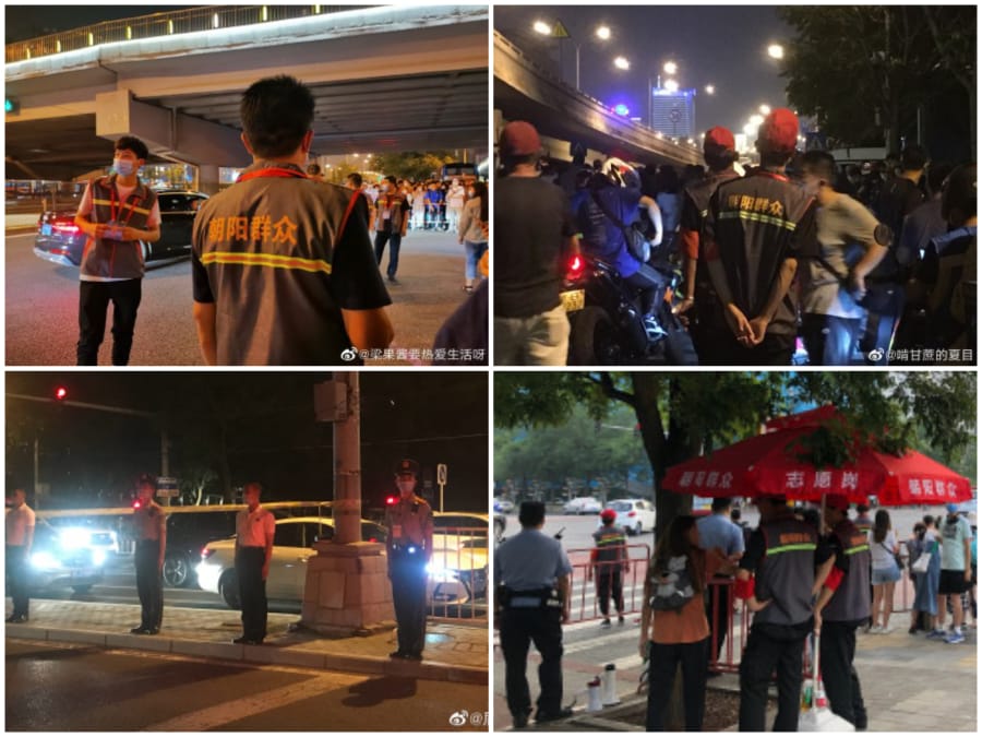 Tại các khu dân cư và cộng đồng, các “bô lão” tinh mắt đeo băng đỏ chăm chú quan sát người dân ra vào, ngoài ra còn có nhiều người mặc đồng phục “quần chúng Triều Dương” theo dõi hành tung của người qua đường. Chính quyền cũng thực hiện kiểm soát giao thông, cấm đường, hạn chế giao thông và hạn chế nghiêm ngặt đối với các phương tiện từ nơi khác vào Bắc Kinh, đồng thời kiểm soát chặt chẽ an toàn ở mọi hướng trên bầu trời và dưới lòng đất.
