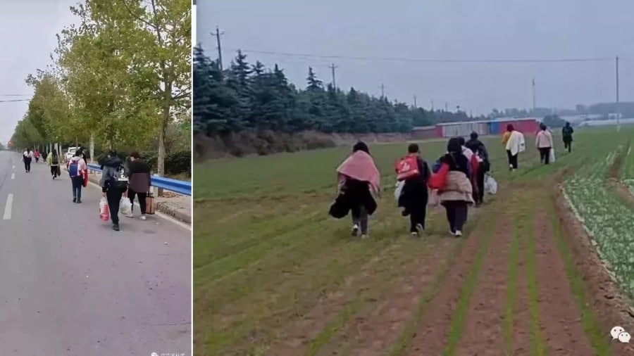 “Một số người đang đi bộ trên cánh đồng lúa mì với hành lý, chăn và mền”, một người dùng WeChat viết.