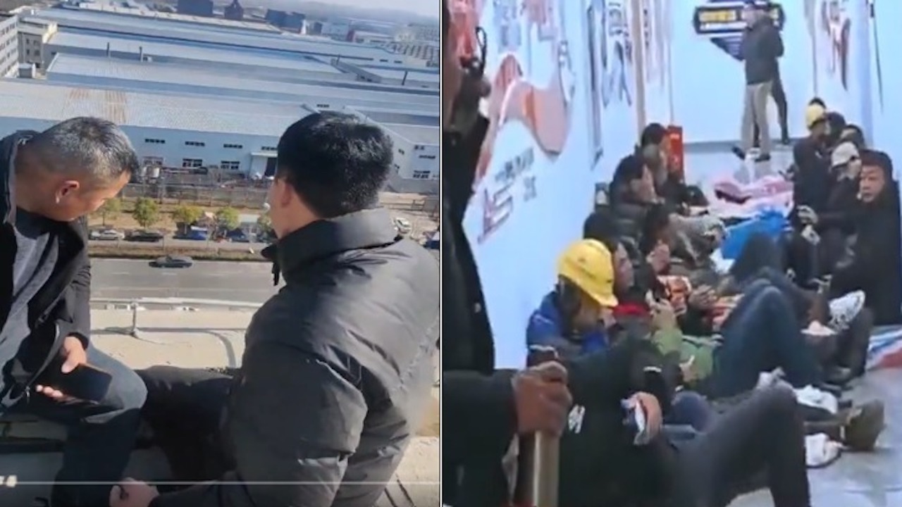 Theo video, trong thời tiết lạnh giá, nhiều lao động nhập cư ngồi dưới đất phủ chăn bông ở hai bên cổng của một tòa nhà cao tầng. Cổng được các nhân viên bảo vệ canh gác. Một công nhân nhập cư đang quỳ trên mặt đất với vẻ mặt đau đớn và tuyệt vọng, xung quanh anh ta có rất nhiều nhân viên bảo vệ.