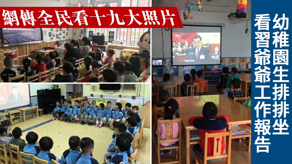 Trong buổi sáng ngày 18/10, tức ngày khai mạc Đại hội 19, Trung Quốc đã cưỡng chế toàn dân tại Đại Lục tập thể xem trực tiếp Đại hội 19. Toàn Trung Quốc có đến 99% các kênh truyền hình đều đồng bộ phát trực tiếp lễ khai mạc, trên thì có các đơn vị cơ quan, dưới thì có trường học, mẫu giáo các nơi, không bỏ qua đối tượng nào.