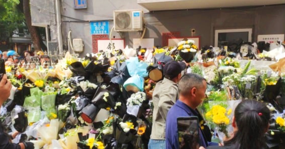 Dòng người đổ về đặt hoa viếng ông Lý Khắc Cường tại nơi ở cũ của ông ở Hợp Phì, tỉnh An Huy sau khi thông tin ông qua đời được công bố. (Nguồn hình ảnh: Mạng xã hội X)