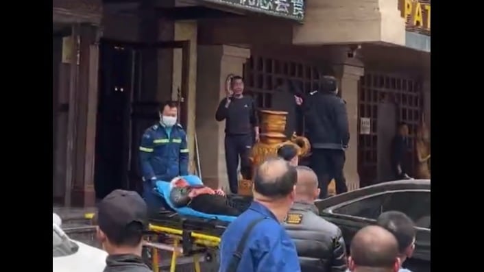 Một vụ thảm án người xảy ra ở thành phố Thẩm Dương, tỉnh Liêu Ninh. Nhân viên cứu hộ đang khiêng những người bị thương và đưa họ đi cứu thương. (Ảnh chụp màn hình video)