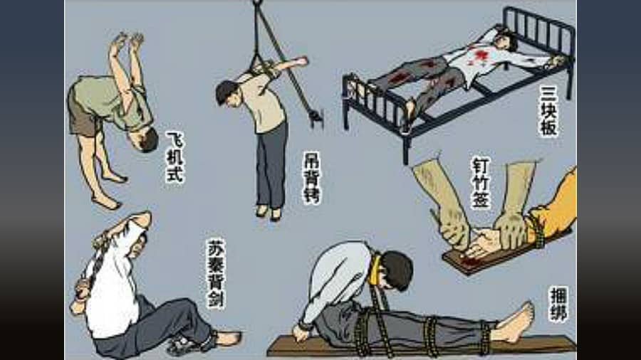 Có vô số phương pháp tra tấn trong trại giam ở Đại Lục. Sau khi bị bắt vào năm 2015, luật sư nhân quyền Tạ Dương đã phải ngồi “xích đu” trong thời gian bị giam giữ. Anh phải ngồi thẳng lưng và không được cử động, hễ cử động sẽ bị đánh. Cô Trương Ngũ Châu, nhà hoạt động nhân quyền ở Quảng Châu, cũng bị bắt, bị tra tấn, chân và tay của cô bị móc lại như một quả bóng tròn.