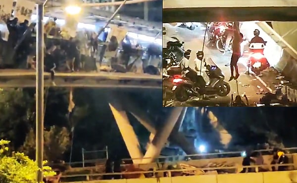Dramatic getaway of some #PolyU protesters, who abseiled down from a bridge, and sped away on the backs of motorbikes that came out of nowhere on a flyover. Police pelted them with tear gas and projectiles as they perched on precarious ledges #HK #HongKongProtest pic.twitter.com/8vBBzhmGF0