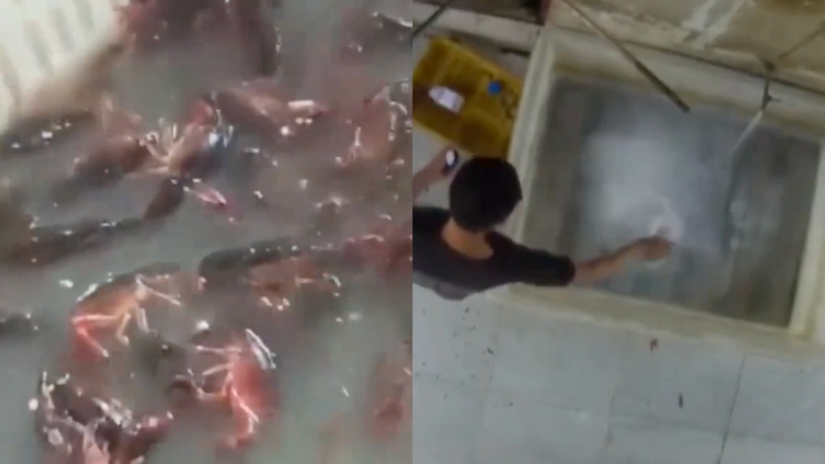 Vào ngày 8/7/2025, một nhà hàng tôm hùm đất nổi tiếng trên mạng ở Nam Kinh đã phơi bày việc sử dụng axit oxalic (nước tẩy bồn cầu) để rửa tôm hùm đất. (Ảnh tổng hợp cắt từ video)
