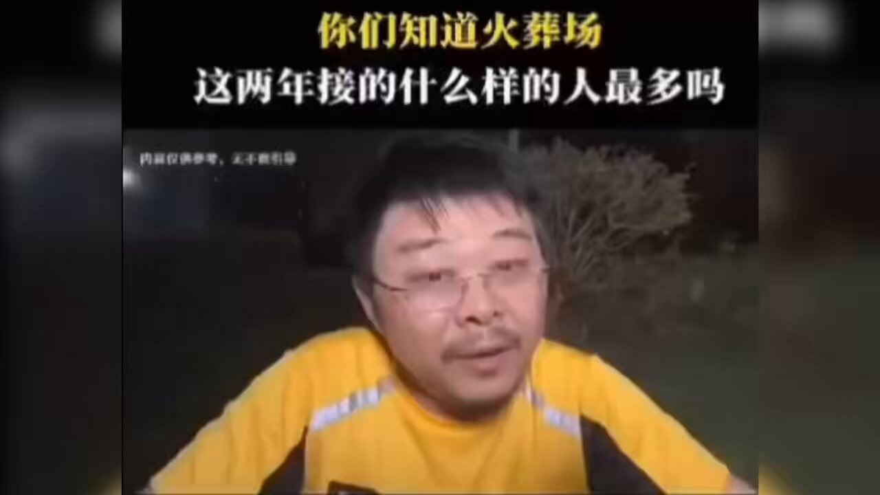 Ngày 8/8, theo một người đàn ông trong một video, hiện nay lò hỏa táng tiếp nhận nhiều thi thể nhất “không phải thế hệ 5X, cũng không phải thế hệ 6X, mà là thế hệ 7X, 8X, 9X”. Vài ngày trước, một người bạn ở lò hỏa táng nói rằng ca làm việc của họ được chia thành ca sáng và ca tối, ca sáng tiếp nhận những người đột tử bất ngờ, còn ca tối chủ yếu là những người trung niên, áp lực lớn, mất ngủ, có khoản vay mua nhà, mua xe, nợ thẻ tín dụng, vay trực tuyến, nợ ngân hàng quá hạn, công ty phá sản… toàn là những trường hợp như vậy, “quá nhiều, quá nhiều!”