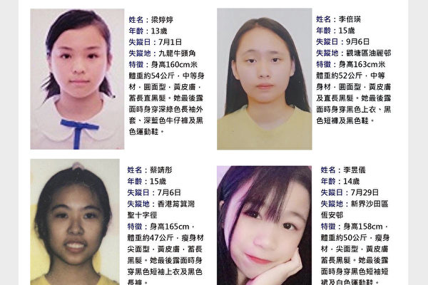 Phong trào phản đối Dự luật Dẫn độ tại Hồng Kông bùng nổ đến nay, liên tiếp có tin cho biết có lượng lớn hiện tượng thanh thiếu niên mất tích bao gồm cả nam và nữ. Trên mạng xã hội Facebook, Telegram, Diễn đàn LIHKG, v.v. đều có thông tin tìm kiếm và theo dõi người mất tích, thông tin bên trên cho thấy hiện tại có những bé gái, thiếu nữ vẫn chưa tìm được, độ tuổi những người này từ 13 đến khoảng 20 tuổi.