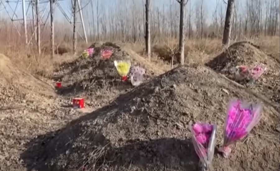 Những ngôi mộ mới bên đường ở nông thôn Trung Quốc. (Ảnh chụp màn hình video DW)