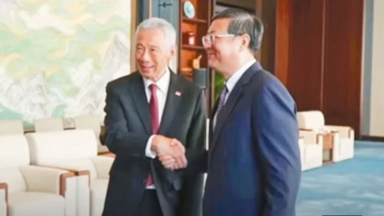 Cuộc gặp giữa Bí thư Thành ủy Thượng Hải Trần Cát Ninh và Cố vấn Nhà nước Singapore Lý Hiển Long đã được truyền thông Singapore đưa tin nổi bật và làm dấy lên cuộc thảo luận sôi nổi. (Ảnh cắt từ video)
