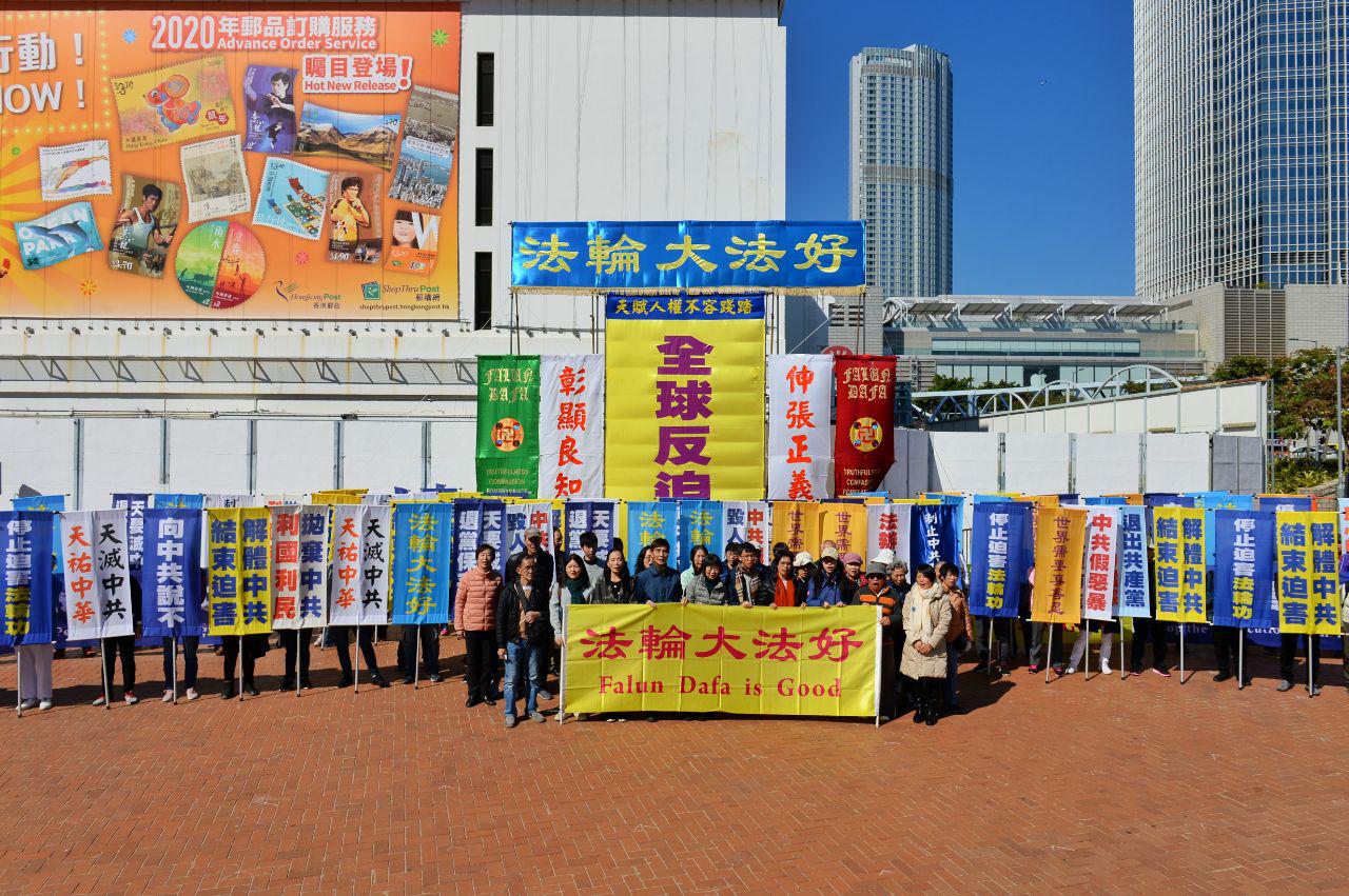 Sáng ngày 8/12, hàng trăm học viên Pháp Luân Công Hồng Kông đã tập trung tại Quảng trường Edinburgh để tổ chức mít tinh phản bức hại nhân ngày Nhân quyền Quốc tế. Phát ngôn viên của Học hội Pháp Luân Công, ông Hồng Kông Giản Hồng Chương cho biết, nửa năm qua tại Hồng Kông đã diễn ra vở kịch xấu xí trấn áp người dân thiện lương, đã đem bản chất “giả, ác, đấu” của ĐCSTQ triển hiện tại Hồng Kông và cho toàn thế giới thấy được, cũng là bằng chứng chứng minh cho sự thật ĐCSTQ trấn áp và bức hại tàn bạo người dân hàng thập kỷ qua, bao gồm cả nhóm người tập Pháp Luân Công.