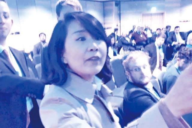 Tuy nhiên Khổng Lâm Lâm từ chối ra khỏi hội trường, sau đó có một một sinh viên tình nguyện phục vụ hội thảo đi đến và khuyên bà rời đi, nhưng bà không muốn rời đi mà còn tát tình nguyện viên này.