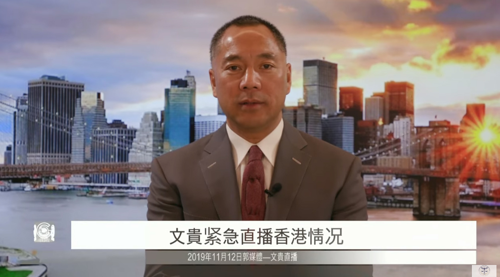 Doanh nhân đang sống lưu vong Quách Văn Quý hôm 12/11 đăng video nói rằng ngày 11/11 Đảng Cộng sản Trung Quốc (ĐCSTQ) đã xông vào nhà dân Hồng Kông bắt người, hơn 20 người đã bị bắt đi. Ông nhắc người dân Hồng Kông đây là tháng mà Hồng Kông tanh mùi máu nhất, tàn nhẫn nhất, cũng là thời điểm mà Hồng Kông có hy vọng nhất. Nước Mỹ chắc chắn sẽ đứng cùng với dân chúng Hồng Kông.
