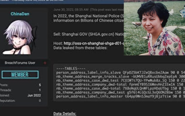 “ChinaDan” cho biết trong bài đăng: “Vào năm 2022, cơ sở dữ liệu của Cục Công an Thượng Hải (SHGA) đã bị rò rỉ. Cơ sở dữ liệu chứa hàng terabyte dữ liệu và thông tin của hàng tỷ công dân Trung Quốc.”; “Cơ sở dữ liệu chứa thông tin của 1 tỷ công dân Trung Quốc và hàng tỷ thông tin hồ sơ vụ án bao gồm: tên, địa chỉ, nơi sinh, số chứng minh nhân dân, số điện thoại di động, tất cả các chi tiết về tội phạm / vụ án.”