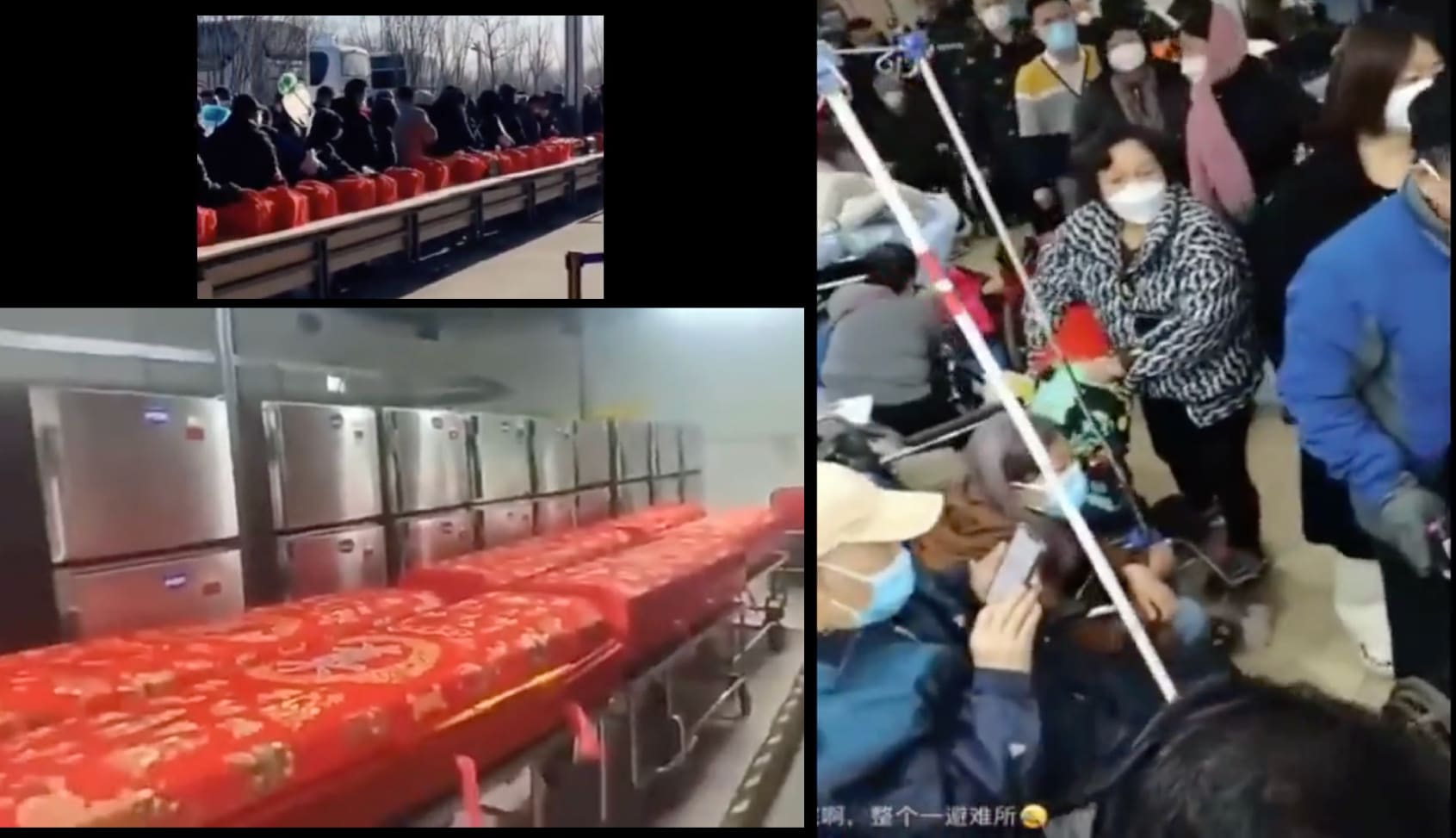 Ngày 27/12, có cư dân mạng đăng video kèm chia sẻ: “Dịch bệnh ở Trung Quốc đã không thể kiểm soát! Người bệnh chen chúc tại bệnh viện, còn các lò hỏa táng là hàng dài người xếp hàng, số người nhiễm virus tăng vọt với nhiều trường hợp phổi trắng. Bức tranh nền kinh tế Trung Quốc thực sự quá ảm đạm”.