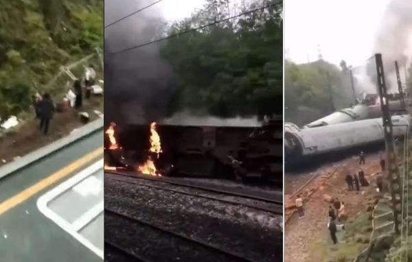 Tàu từ Tế Nam đến Quảng Châu bị trật bánh lật nghiêng và bốc cháy [VIDEO]