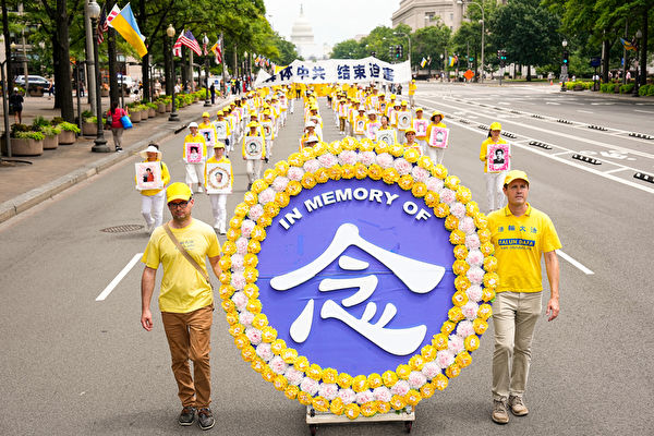 Ngày 21/7/2022, tại thủ đô Washington, Mỹ, cuộc tuần hành kỷ niệm 23 năm Pháp Luân Công phản bức hại; những người tham gia tuần hành tưởng niệm các học viên Pháp Luân Công bị bức hại đến chết tại Trung Quốc Đại Lục. (Ảnh: Đới Binh / Epoch Times)