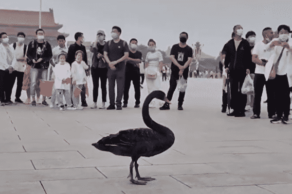 Giờ đây thiên nga đen đã thực sự bay đến trung tâm chính trị Bắc Kinh của Trung Quốc, thậm chí tình cờ hạ cánh xuống gần quốc kỳ ở Quảng trường Thiên An Môn – một nơi có thể nói là đại diện cho vận mệnh quốc gia của Trung Quốc. Có vẻ như hiện tượng báo hiệu điềm không lành?!
