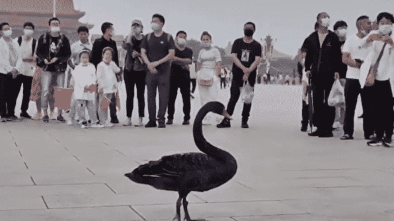 Thiên nga đen bất ngờ xuất hiện tại quảng trường Thiên An Môn (Nguồn: Chụp màn hình video)